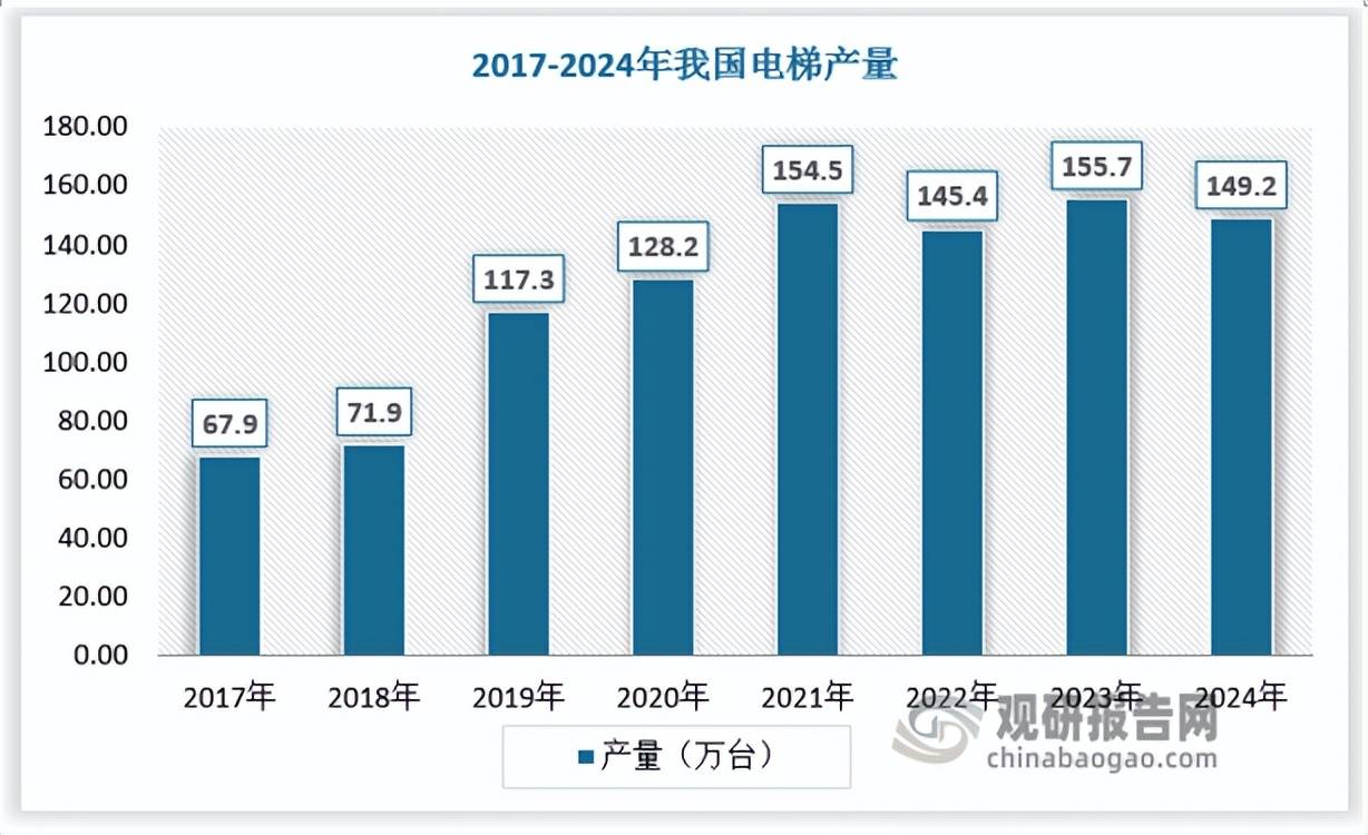 电梯曳引机是电梯的动力配置,囊括永磁同步曳引机与守旧异步曳引机。永磁同步电动机采用高本能永磁原料和出格的电机组织,具有节能、环保、低速、大转矩等特征。依据数据显示,截至2024岁终,我邦电梯产量为149.2万台。